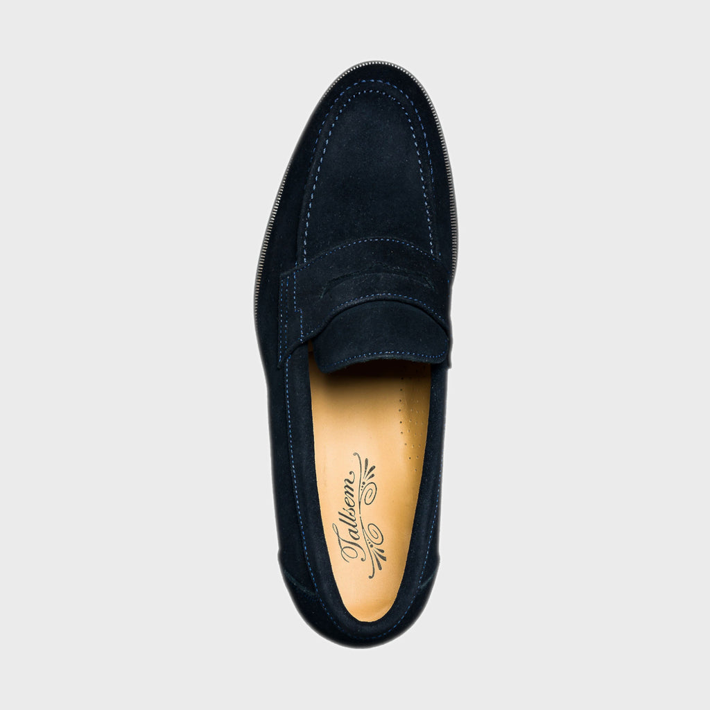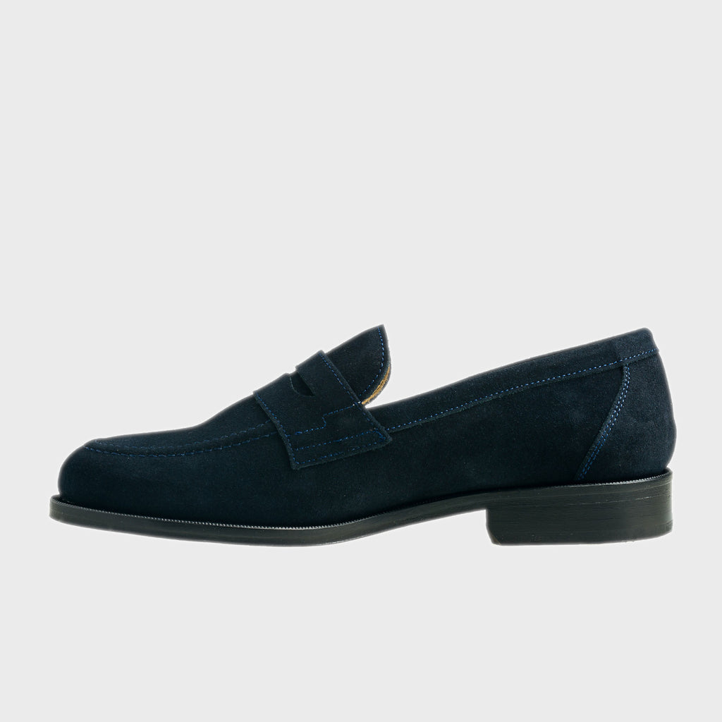 Zapato mocasin hombre banda. Piel exterior en ante marino. El interior en piel vacuno. La suela cuero con consido Blake, que crea una armonía entre la durabilidad y flexibilidad. Horma Cox, punta sueve y fina. El ancho es medio y el calce estantar. Un zapato cómodo y para cualquier época del año.