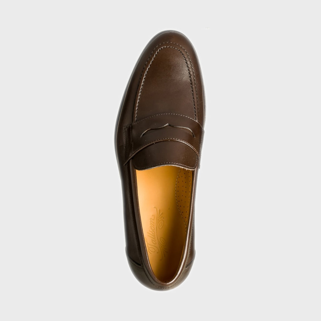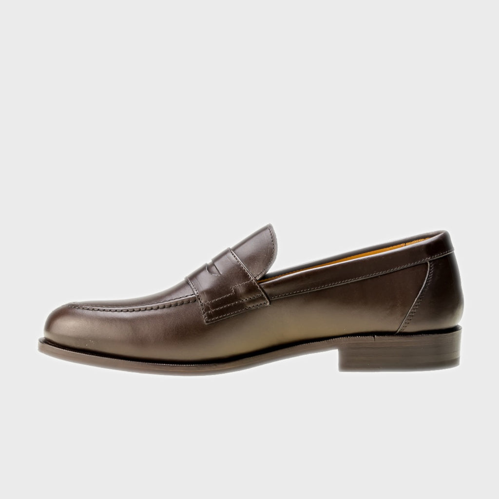 Zapato mocasin hombre banda. Piel exterior en piel, calf marrón. El interior en piel vacuno. La suela cuero con consido Blake, que crea una armonía entre la durabilidad y flexibilidad. Horma Cox, punta sueve y fina. El ancho es medio y el calce estantar. Un zapato cómodo y para cualquier época del año.