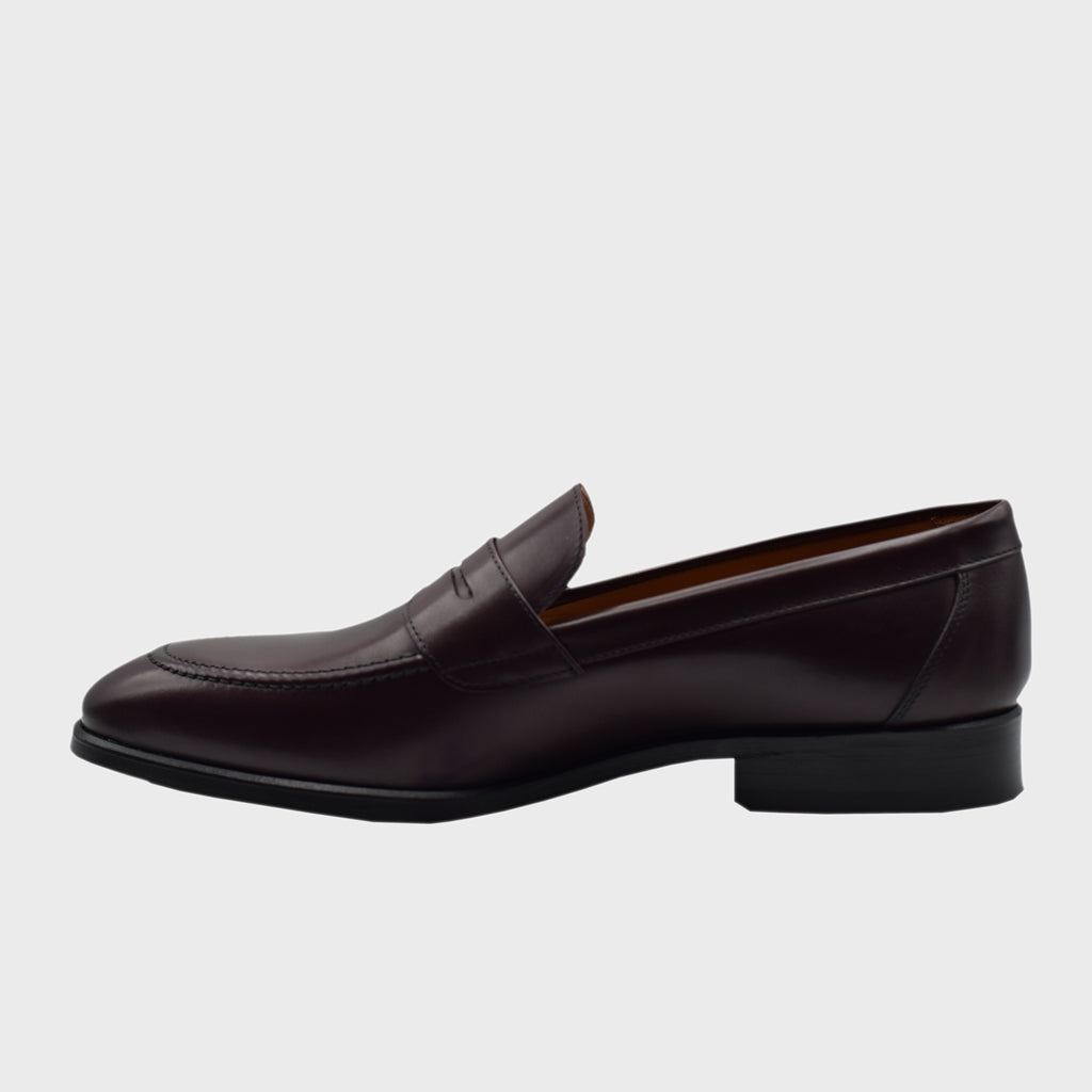 Zapato mocasín hombre banda. Piel exterior en piel, calf vino. El interior en piel vacuno. La suela mixta con cosido Blake, que crea una armonía entre la durabilidad y flexibilidad. Horma Alfa es una horma de ancho F inglés, con puntera fina y semiredondeada. El ancho es medio y el calce estándar. Un zapato cómodo y para cualquier época del año.